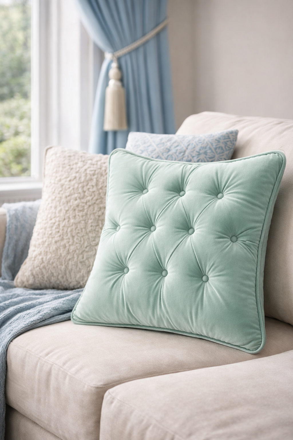 This soft tufted throw pillow adds comfort and subtle elegance to any living space. Featuring a plush fabric surface with a classic button-tufted design, it provides gentle support while enhancing the cozy atmosphere of sofas, beds, and reading corners.