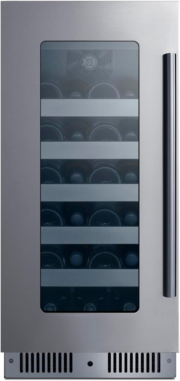 Summit 15” Wine Cellar, Built in Wine Refrigerator, 20 Bottle Capacity, Single Zone Wine Cellar, Stainless Steel & Glass- CL155WC1LHD (Left Handed Door Swing)