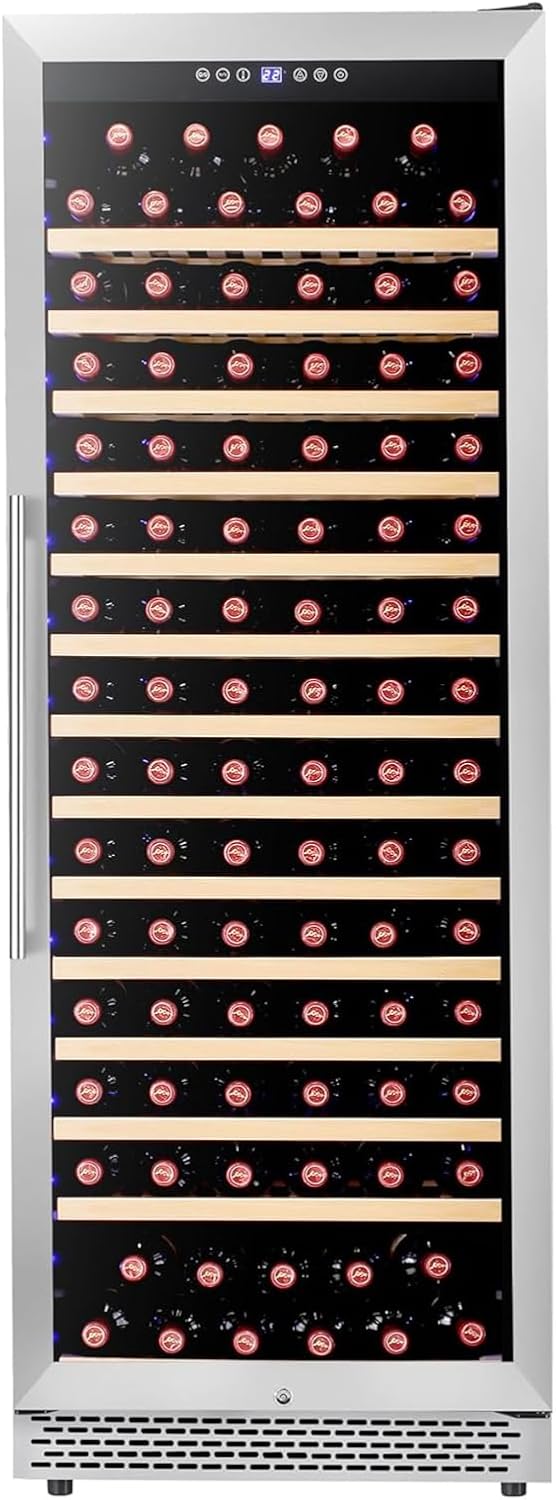 154 Bottle Wine Cooler Refrigerator, Large Built-In or Freestanding Dual Zone Wine Fridge with UV Resistant Glass Door & LED Lighting, Commercial Grade 35-64°F Temperature Control
