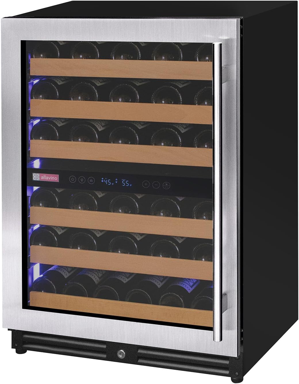 Allavino 56 Bottle Dual Zone Left Hinge Stainless Steel Wine Refrigerator