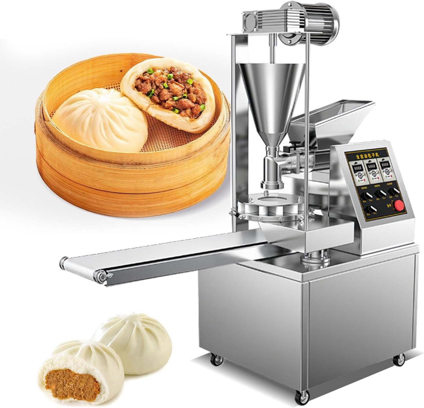 Commercial Automatic Baozi Maker,Momo Meat Pie Steamed Stuffed Bun Machine Bun Forming Machine-5 Molds,Bun Can Adjust From 0.71oz To 7.05oz(20g-200g),110V,1800W,Capacity Up To 3000Pcs/H