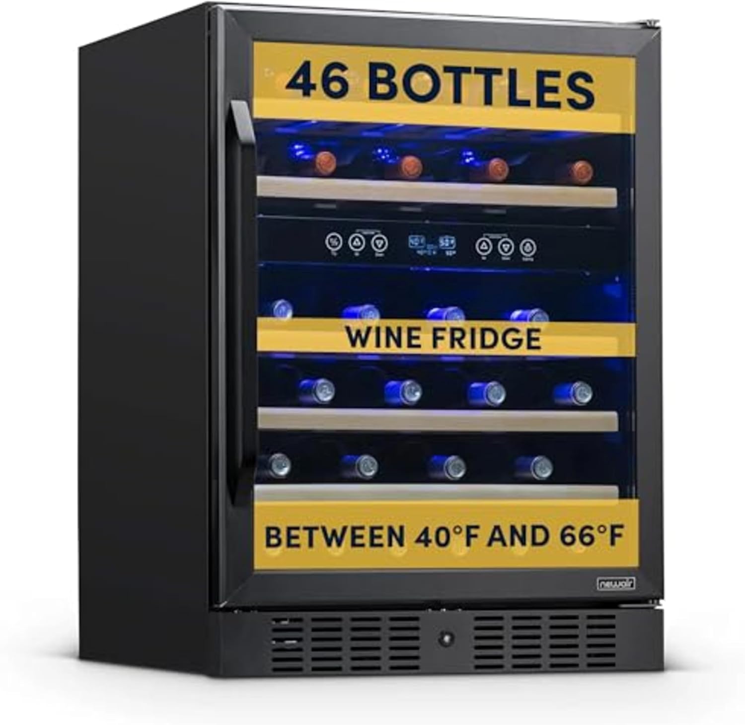 24 in Wine Cooler Refrigerator - 46 Bottle Capacity, Stable Temperature Control, Digital Control Panel, Stainless Steel & Tempered Glass, Safety Lock