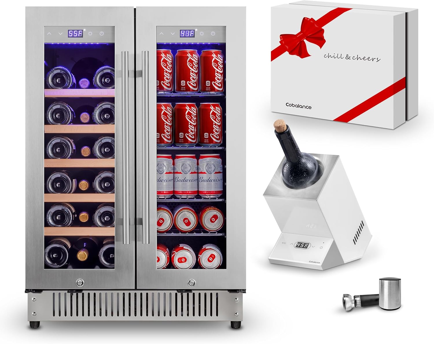 Cobalance 24 Inch Dual Zone Wine and Beverage Refrigerator-72 Cans and 20 Bottles Cooler, & Single Bottle Wine Chiller,Built-in or Freestanding Fridge for Beer, Soda, Drinks, Home,
