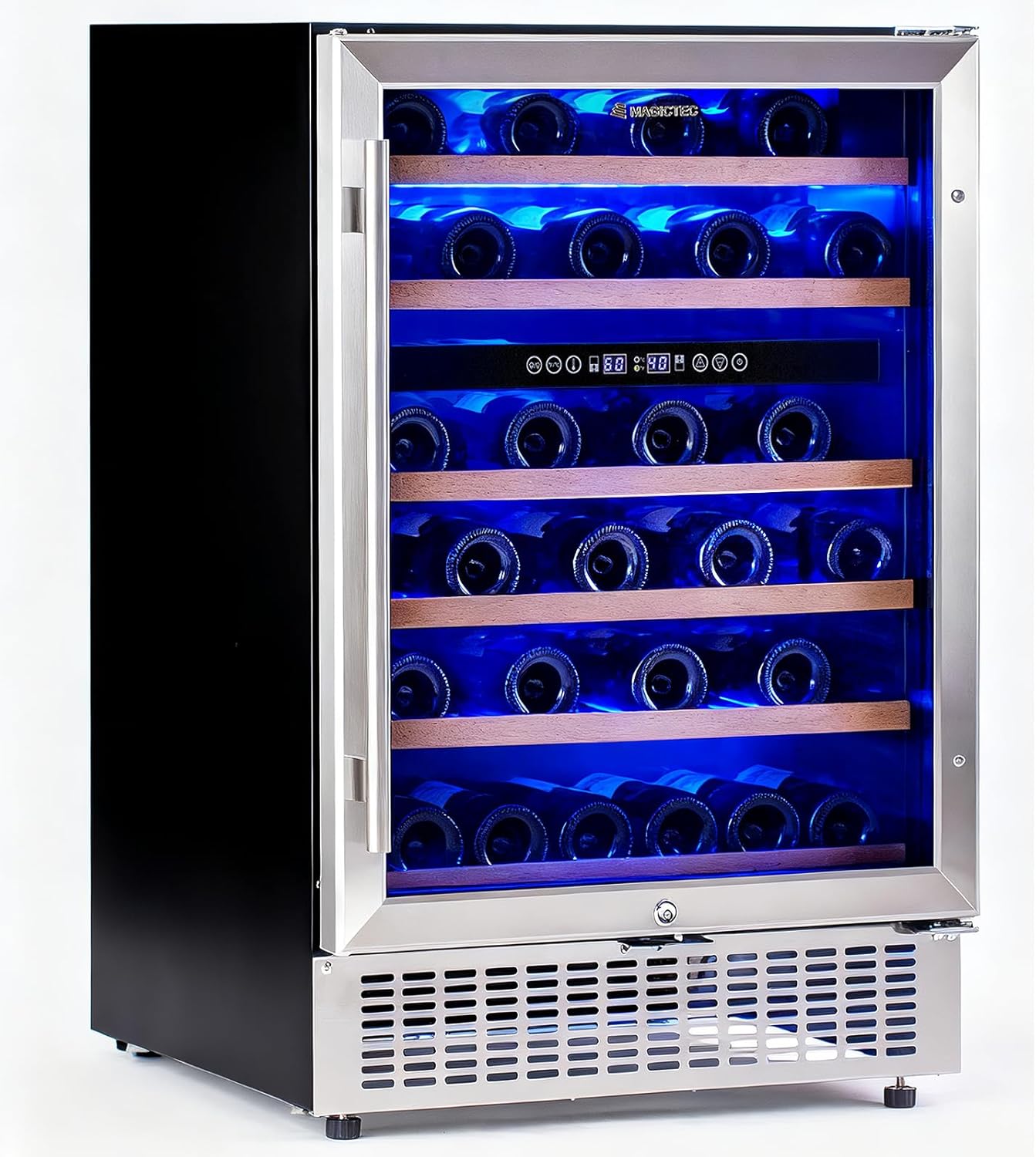 magictec Wine Fridge Under Counter 24 inch,46 Bottles,Dual Zone Wine cooler refrigerators Free Standing, Built-In Wine Fridge with Lock,Stainless Steel Handle,For Home Office Bar